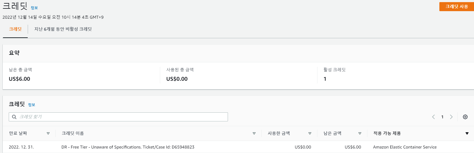 안녕하세요, 여기에서 계정 및 청구서를 확인하세요.연락해 주시고 협조해 주셔서 감사합니다.좋은 소식이 있어요! AWS Support 콘솔을 통해 제출된 응답만 수신하며, 이메일 알림에 대한 응답은 응답이 없는 이메일 주소로 전송된다는 점을 상기시켜 드립니다.이 지원 사례는 AWS 지원 센터에서 다음 위치에 액세스할 수 있습니다. •https://console.aws.amazon.com/support/home#/case/?displayId=&language=11503203101 Fargate 서비스는 프리 티어 프로모션에 포함되지 않으며 온디맨드 요금이 부과됩니다. Fargate 요금에 대한 자세한 내용은 다음 설명서를 참조하십시오. https://aws.amazon.com/fargate/pricing/ 그렇긴 하지만, 귀하의 계정을 살펴보고 조사를 한 결과 2022년 12월 청구서 금액에 대한 크레딧을 받을 수 있는 방법을 찾았습니다.단 한 번의 예외로 2022년 12월 청구서에 발생한 요금에 대한 세액 공제를 승인했음을 알려드리게 되어 기쁩니다.계정을 검토한 결과 서비스가 제거되었음을 확인할 수 있으며 프리 티어 프로모션을 계속 사용하는 한 앞으로도 요금이 부과되지 않을 것임을 확인할 수 있습니다.따라서 추가 요금에 대해 걱정할 필요가 없습니다.:) 크레딧은 다음 링크에서 확인할 수 있습니다.https://console.aws.amazon.com/billing/home#/credits 당사는 여기에 나와 있는 서비스 계약에 따라 만족스럽게 서비스에 액세스하고 사용할 수 있도록 했습니다.https://aws.amazon.com/agreement. 계약의 일환으로 당사 서비스 사용에 대한 모든 관련 수수료 및 요금을 포함하여 귀하의 계정에서 발생하는 모든 활동에 대한 책임은 귀하에게 있음을 알려드립니다.또한 여기에서 당사의 공동 책임 모델을 검토해 주시기 바랍니다.https://aws.amazon.com/compliance/shared-responsibility-model/. 향후 예상치 못한 요금이 부과되지 않도록 아래 기능을 사용하여 정기적으로 사용량을 모니터링하고 당사 서비스의 청구 측면과 관련하여 궁금한 점이 있으면 알려주시기 바랍니다.몇 가지 권장 사항에는 CloudWatch 결제 알림 및 경보, 예산, CloudTrail이 포함됩니다.이러한 서비스와 해당 기능에 대한 자세한 내용은 아래 설명서 링크를 참조하십시오. -https://aws.amazon.com/cloudtrail/getting-started/ -http://docs.aws.amazon.com/AWSEC2/latest/UserGuide/using-cloudwatch.html -https://docs.aws.amazon.com/awsaccountbilling/latest/aboutv2/budgets-managing-costs.html 오늘 당신을 도와 줘서 기뻤습니다.추가 질문이 있으시면 언제든지 저에게 연락 주시기 바랍니다. 저희는 여러분의 피드백을 소중하게 생각합니다.AWS Support Center에서 이 서신 및 기타 서신을 평가하여 경험을 공유해 주십시오.서신의 오른쪽 상단에 있는 별표를 선택하여 서신을 평가할 수 있습니다. 안부 인사, 가레스 B. 아마존 웹 서비스