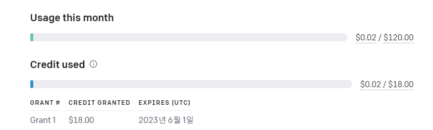 Billing 카드를 등록하면 18달러를 무료 크레딧으로 제공합니다.