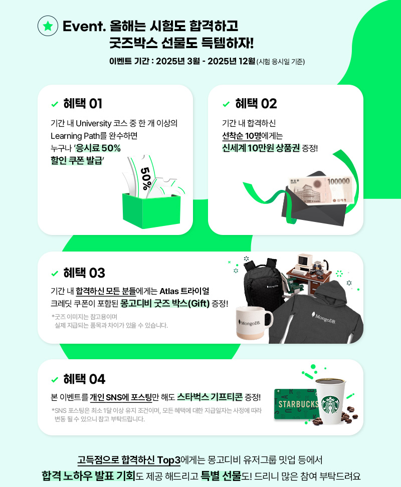 MongoDB 유니버시티 & 자격증 지원 프로그램